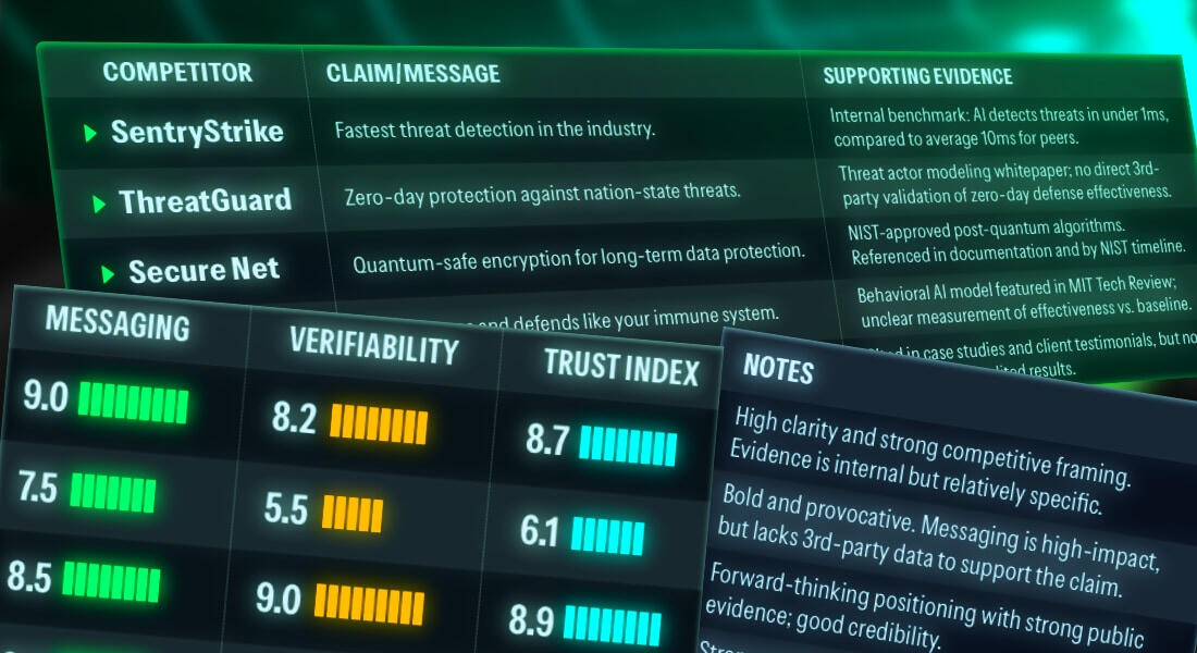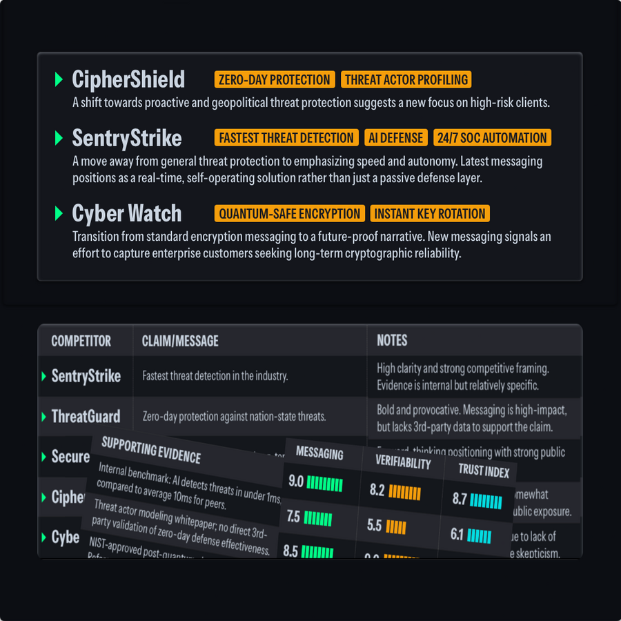 See through the hype, spot weak positioning, and identify messaging shifts early.