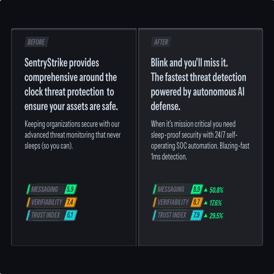 The Messaging Score™ quantifies the strength of your competitors' positioning and signals when they shift tactics.